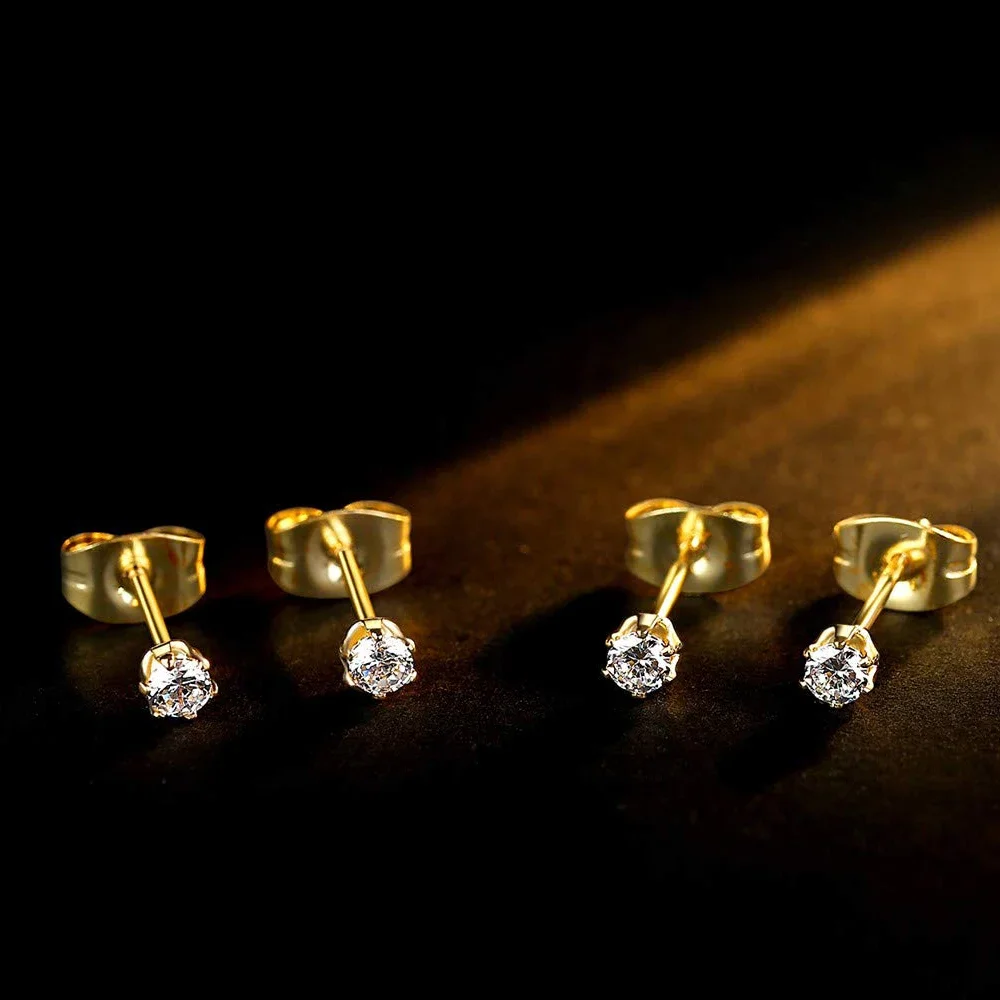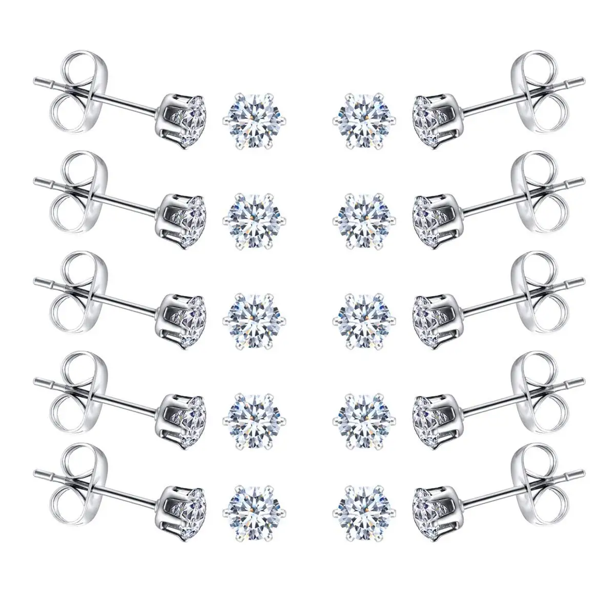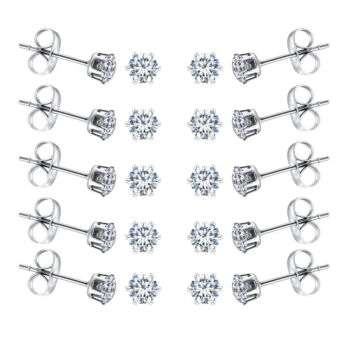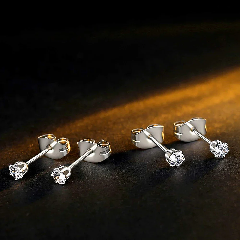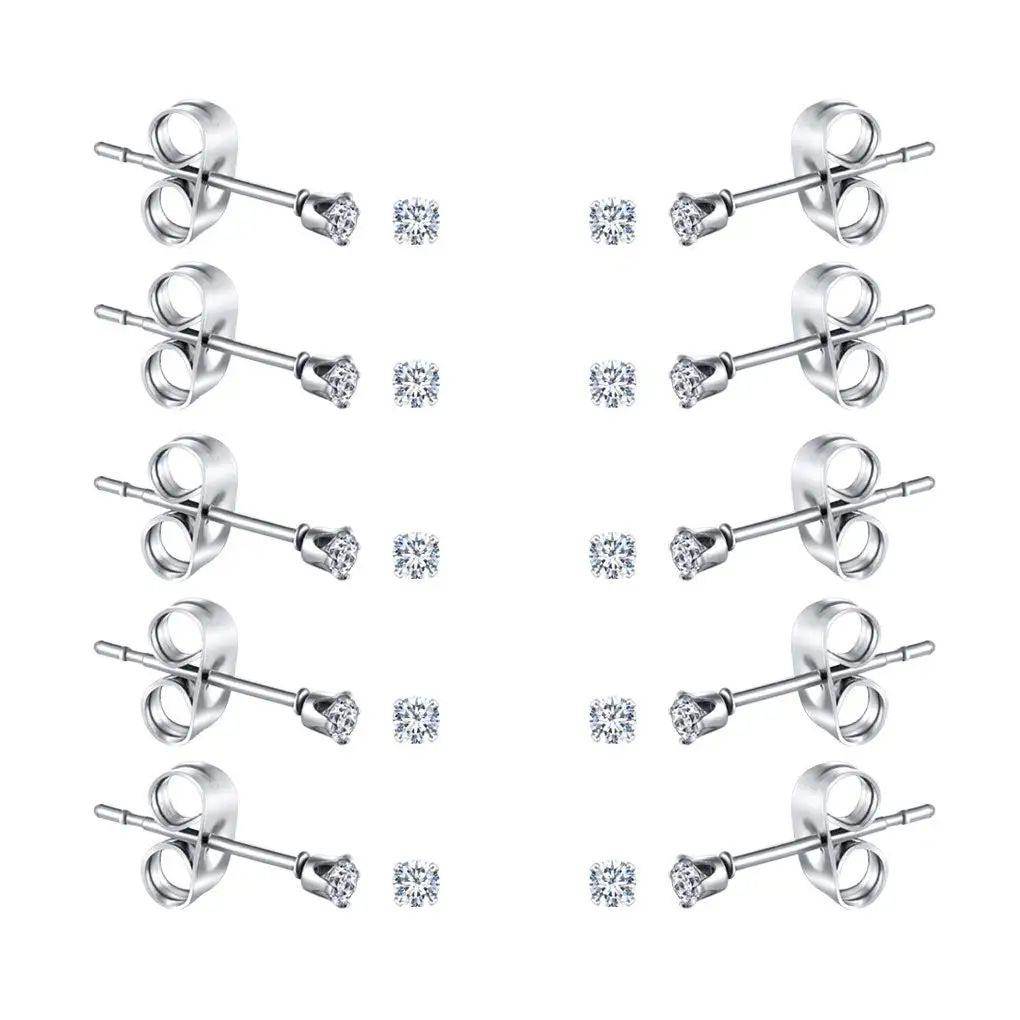 6-10 Pairs Surgical Stainless Steel Tiny Round Clear Cubic Zirconia Stud Earrings Set 2mm 3mm 4mm for Women Men