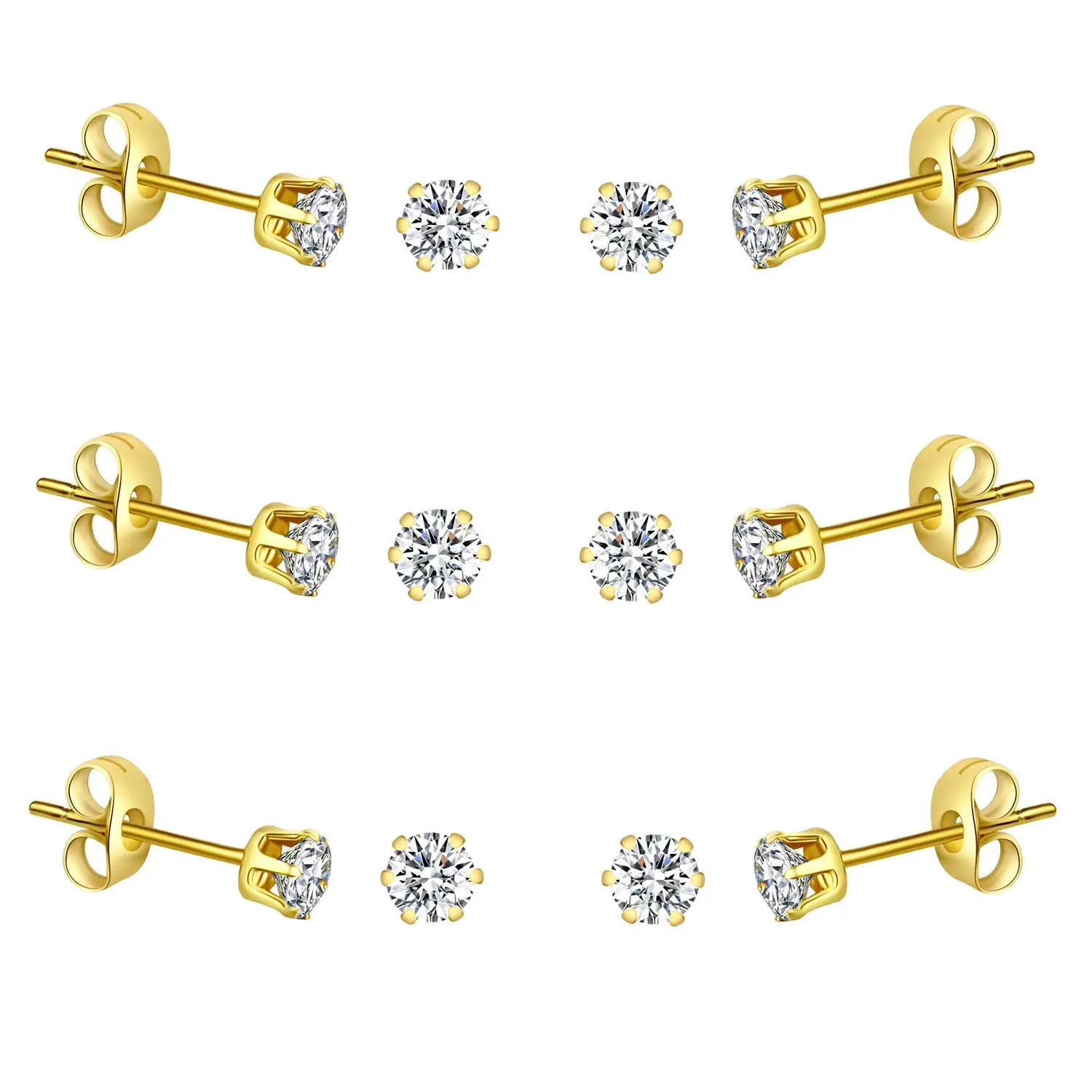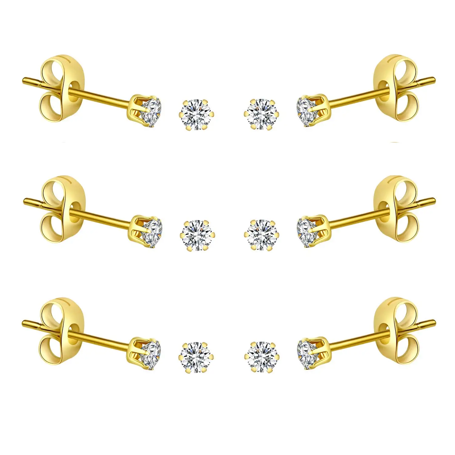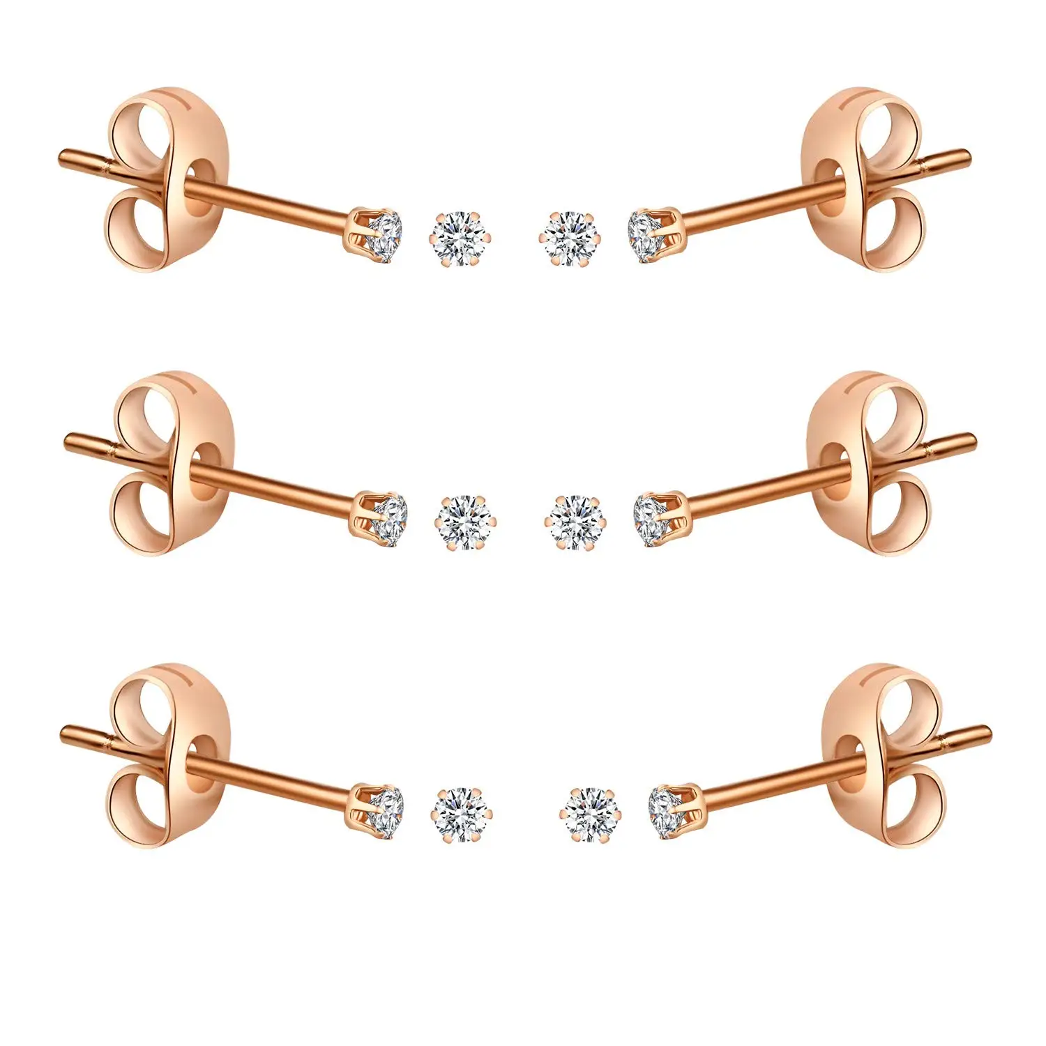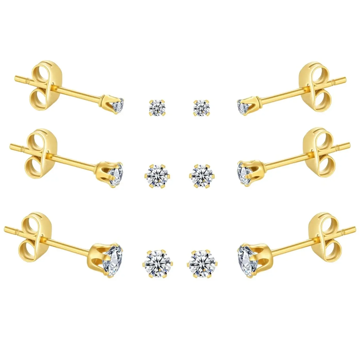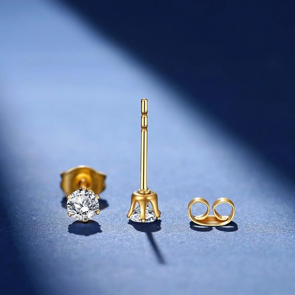 6-10 Pairs Surgical Stainless Steel Tiny Round Clear Cubic Zirconia Stud Earrings Set 2mm 3mm 4mm for Women Men
